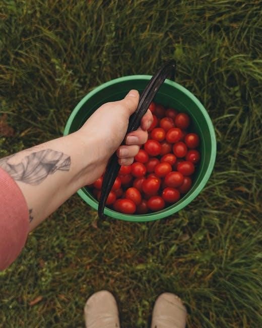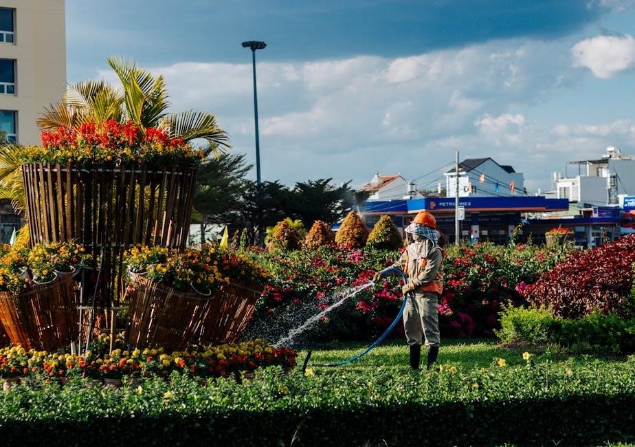 Watering in the morning is best, allowing foliage to dry before nightfall. Mulching around plants helps retain moisture and suppress weeds, reducing the need for frequent watering. Collect rainwater in barrels for an eco-friendly watering source, a practice encouraged by the PDF guidelines. Observe your plants for signs of underwatering (wilting) or overwatering (yellowing leaves).